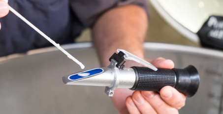 На линзу падает луч, который преломляется под определенным углом. Угол преломления света в линзе, на которую уже нанесено вещество (например, СОЖ) зависит от плотности исследуемого веществ. Свет, преломляясь, попадает на систему линз и отображается на шкале. Коэффициентом преломления называют соотношения между углом вхождения луча и углом преломления в среде.